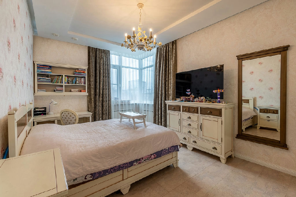 Квартира в идеальном состоянии. Общая площадь 111 м2. Выполнен качественный, дизайнерский ремонт в классическом стиле. В отделке использованы дорогие материалы. Удачная планировка трёх спален с большими окнами(площадь комнат 25,6м2; 20,9 м2 и 18.3м2). Высокие потолки 3 м., полы из пробки и керамогранита с электрическим подогревом, двери из массива ольхи, кондиционеры Mitsubishi в каждой комнате. 2 просторных санузла с ванной и душевой кабиной, итальянская плитка и сантехника. Полностью укомплектована мебелью из массива дерева под заказ.