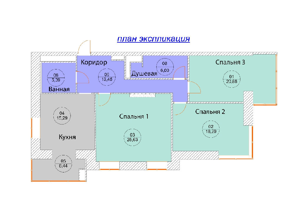Комнаты: 25,6-20,9-18,3 м2