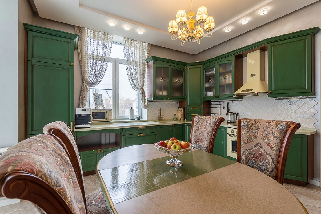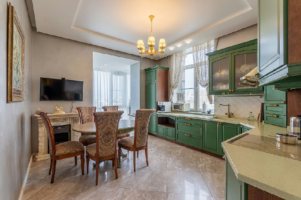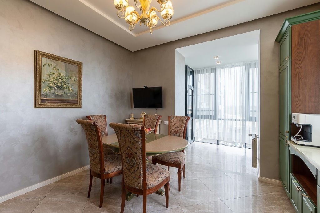 Кухня-столовая со встроенной техникой 21,7 м2, с большим панорамным окном для уютных семейных вечеров. Квартира продаётся со всей мебелью и техникой + 2 кладовые на этаже.